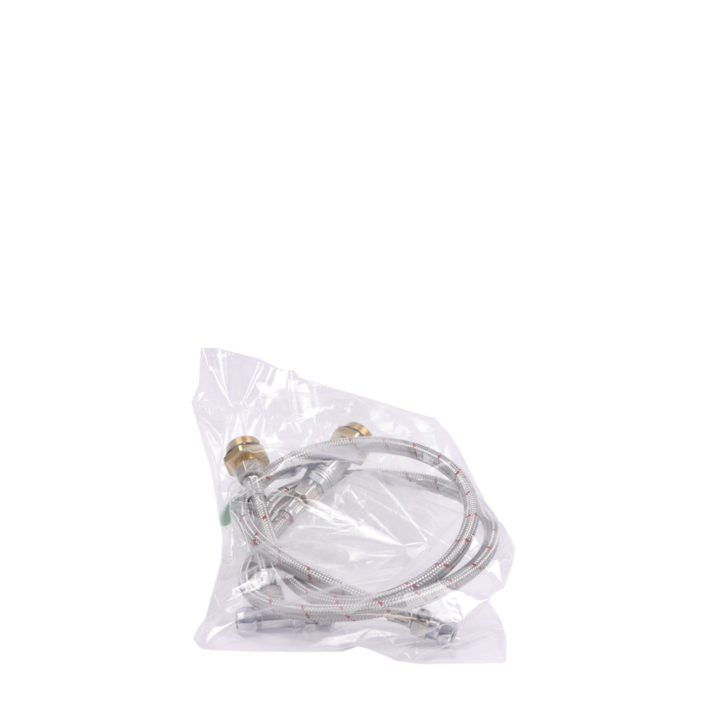 Das Anschlussset besteht aus zwei hochwertigen 3/8" Panzerschläuchen mit entsprechenden Anschlussnippeln an die Wasserfiltergehäuse WatPass® Profi DUO & Triple, sowie einem DVGW zertifizierten Kugelhahn zum Anschluss an ein Kaltwassereckventil.