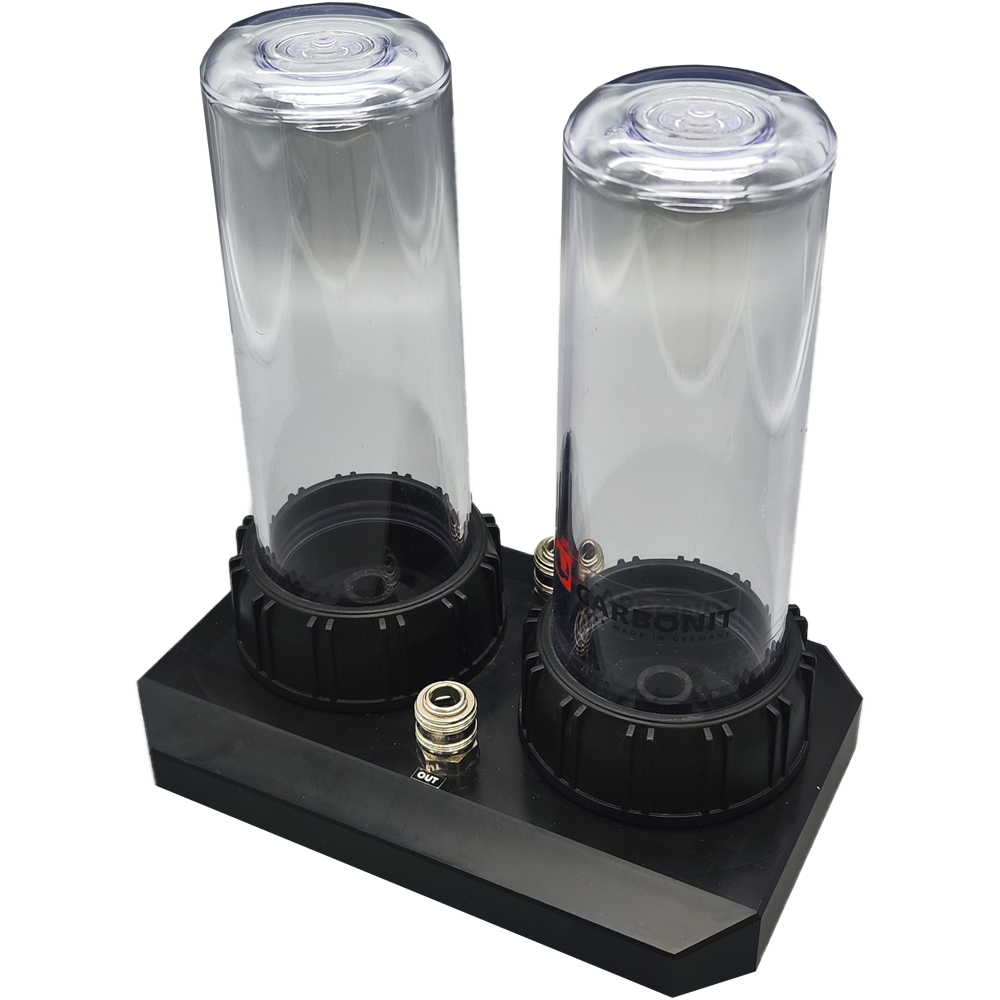 Der DUO HP Basic-P von Carbonit ist ein zweistufiges Wasserfiltergehäuse (doppelte Kapazität und Durchlaufleistung) mit paraleller Anordnung der Patronen. Der Filter eignet sich hervorragend zum Bestücken mit zwei Filtern.