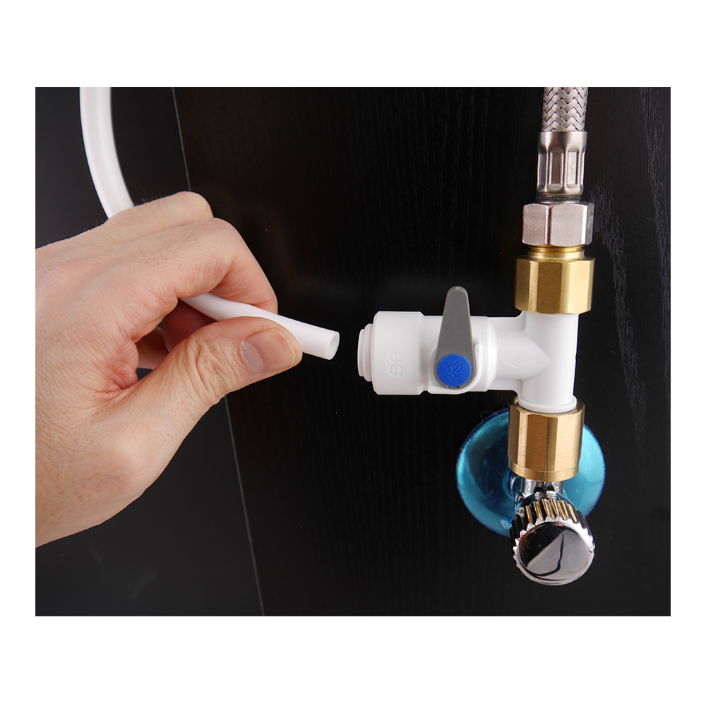 The adapter facilitates the connection of AquaAvanti inline systems, especially when it is tight and leakage protection is to be used, since the hoses used are relatively stiff due to the design. Of course you can also use the adapter for other, suitable systems such as reverse osmosis systems.