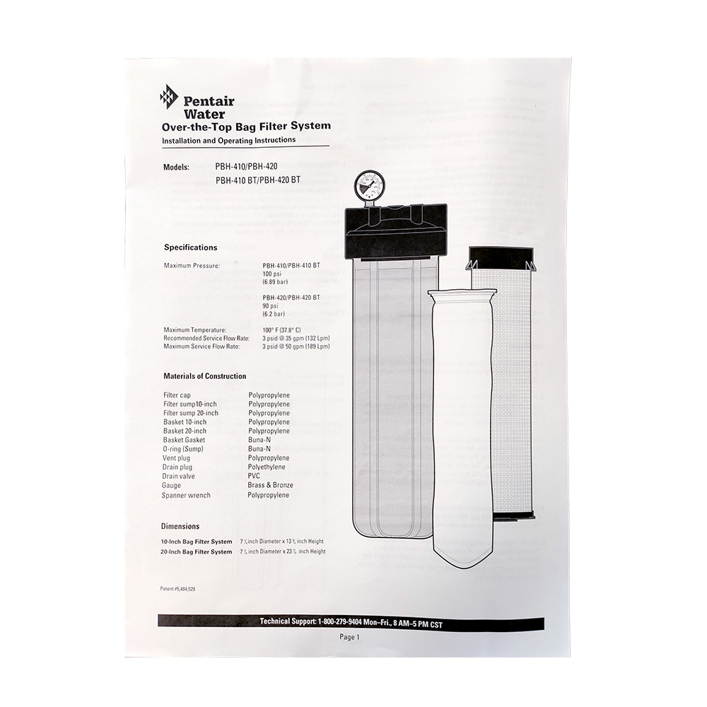 Produktinformationen "Pentek Big Blue PBH Beutelfiltergehäuse incl. Zubehör 10"/1 1/2" BSP Gewinde"